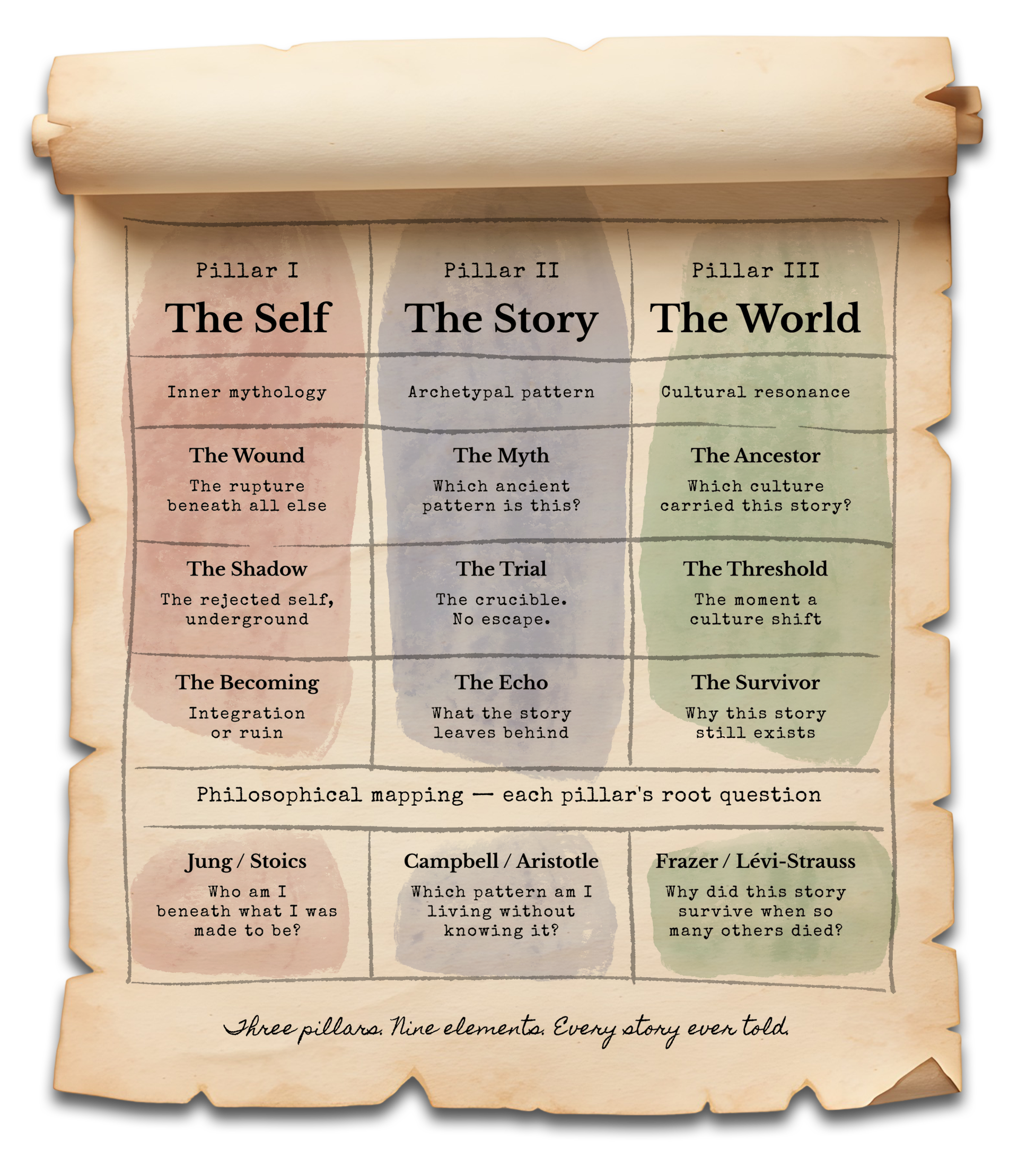 The 3x3 Universal Story Cosmology